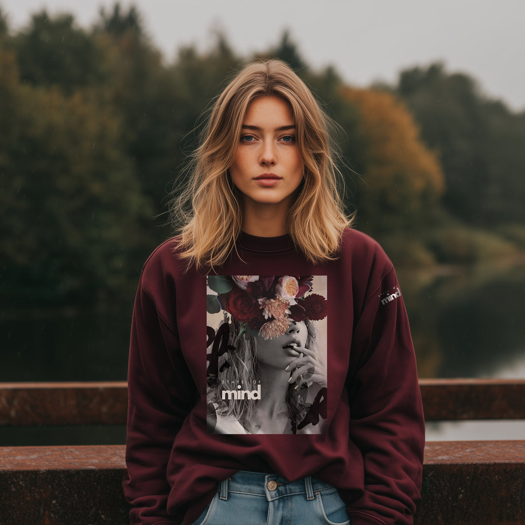 Autumn Flowers Burgundy Cotton Fleece – Durable, high-quality sweater printed in Canada | State of Mind